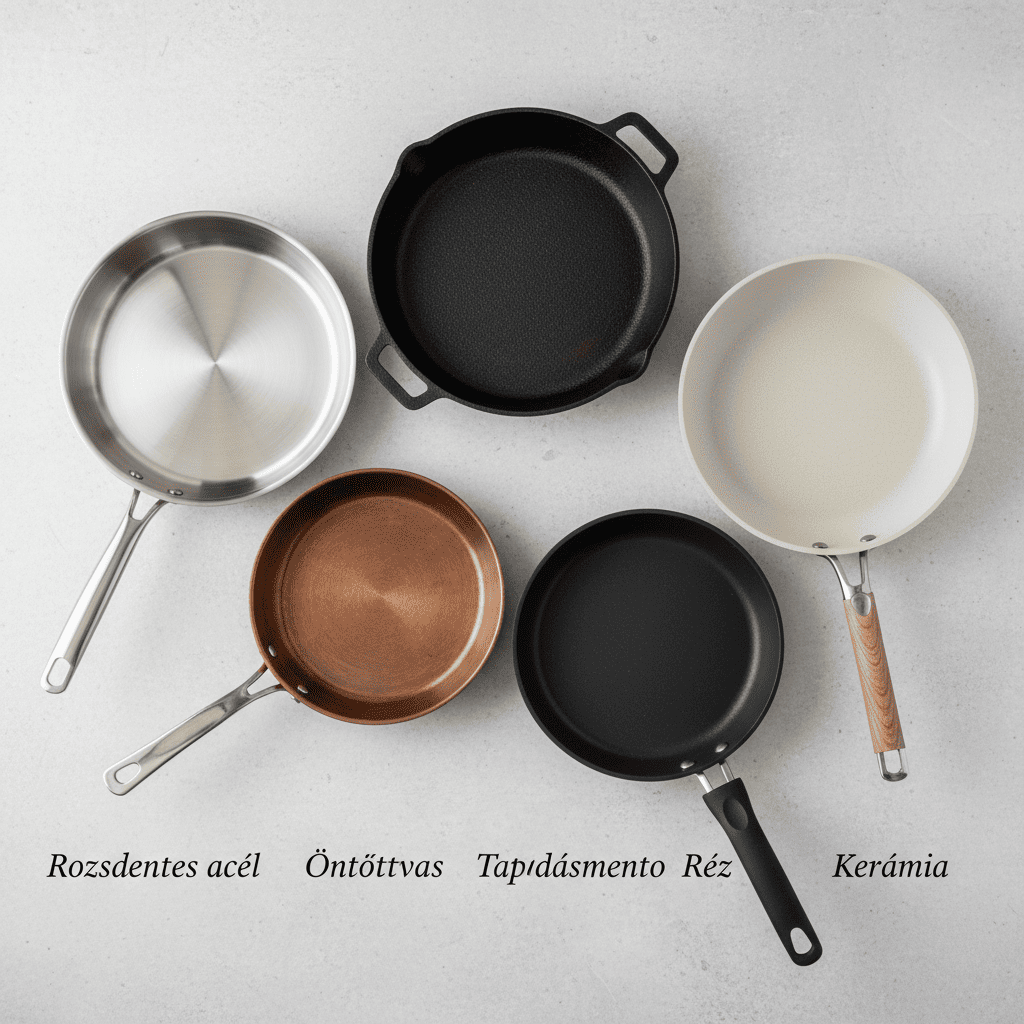 Serpenyő anyagok között válogatnál? Segítünk kiválasztani: rozsdamentes acél, öntöttvas vagy tapadásmentes